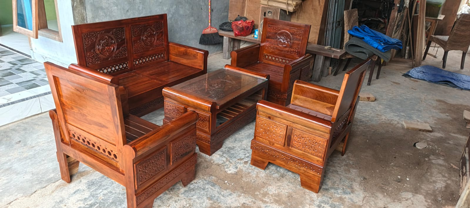 Kursi tamu kayu jati ukir klasik mewah ini bukan sekadar furnitur. Produk ini meningkatkan nilai estetika dan kenyamanan ruang tamu Anda. Tampilan rumah terlihat lebih berwibawa dan eksklusif. Jika Anda mencari kursi tamu yang kuat, elegan, dan tahan lama, produk ini menjadi pilihan yang tepat.
